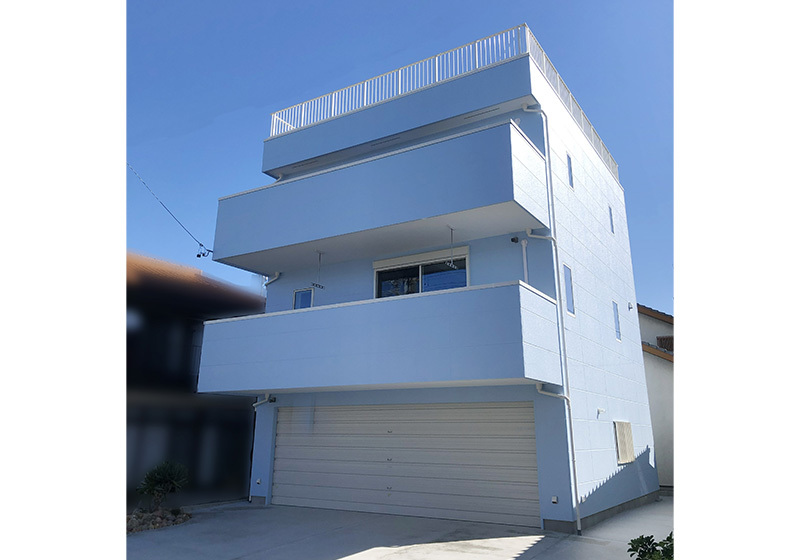 重量鉄骨造の強みを活かした、ゆとりあるガレージ空間のある3階建ガレージハウスです。